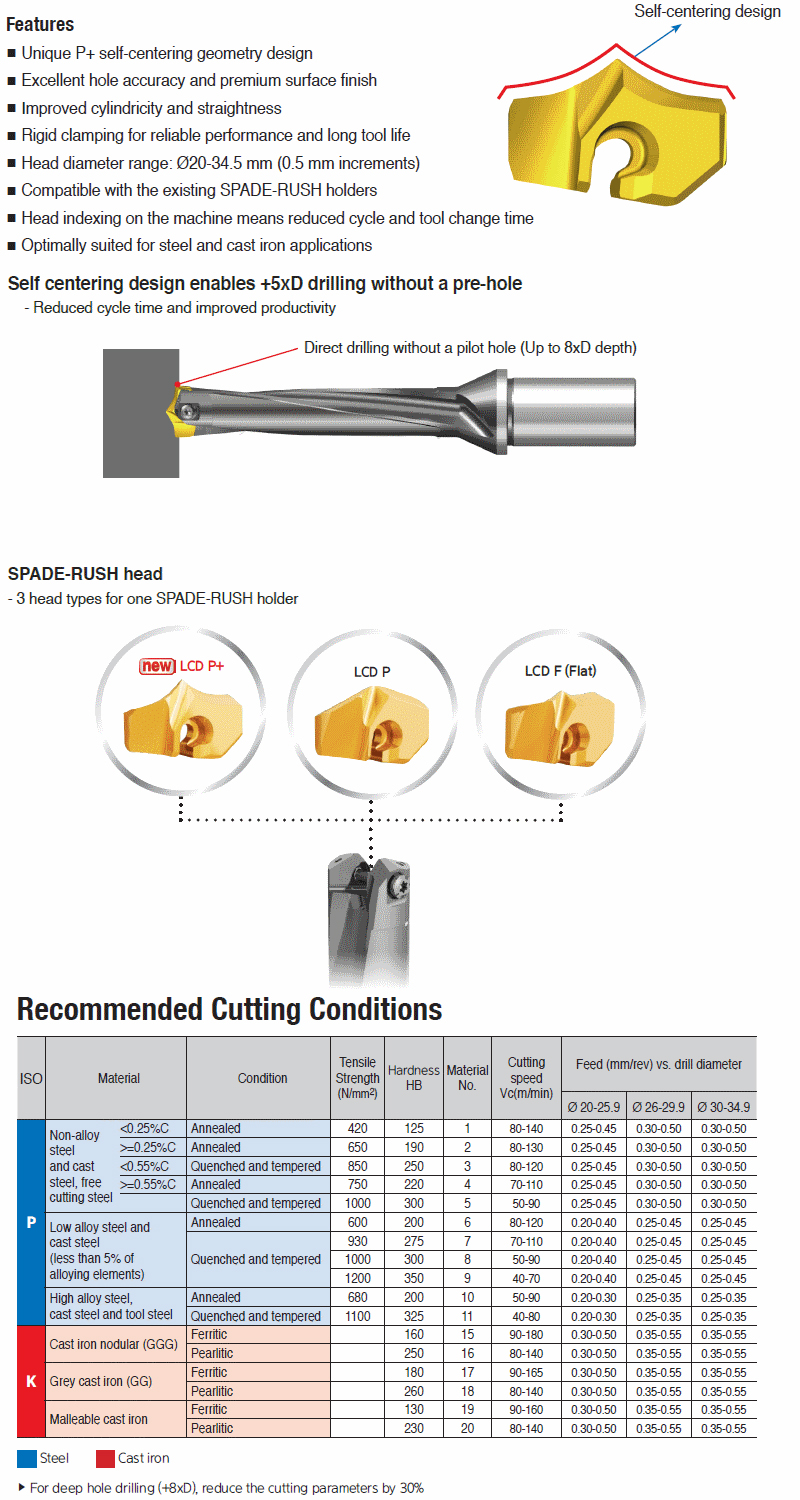 Family Description | SPADERUSH Head changeable drilling inserts with Self-Centering for high productivity of large diameter | COO | S.KOREA |